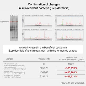 - A clear increase in the beneficial bacterium S.epidermidis after skin treatment with the fermented extract